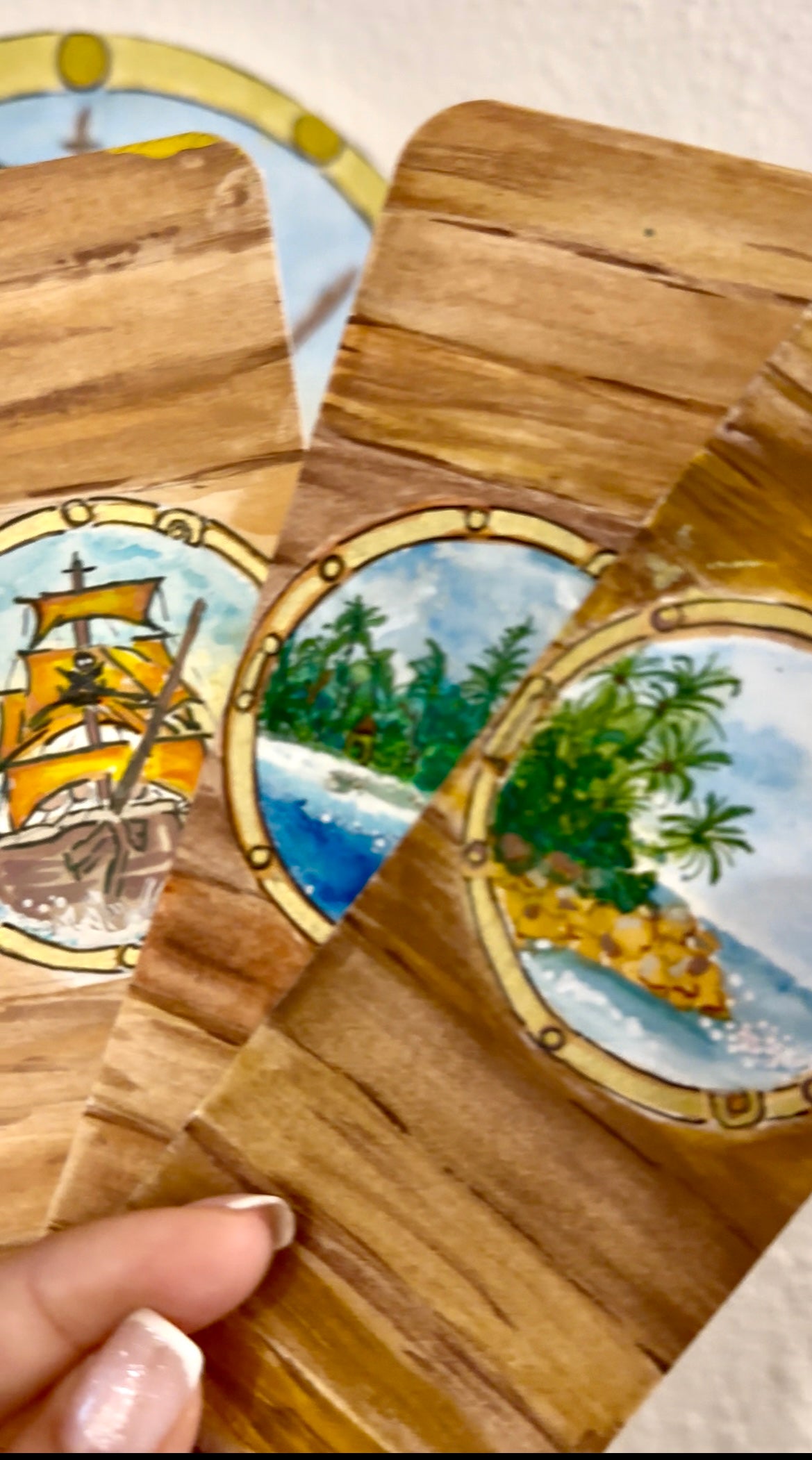 HAND-PAINTED WATERCOLOR BOOKMARK; PIRATE SHIP